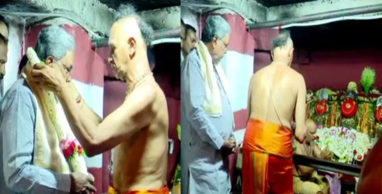 ಹಾಸನ : ಸಿಎಂ ಸಿದ್ದರಾಮಯ್ಯ ಅವರಿಂದು ಹಾಸನದ ಅಧಿದೇವತೆ ಹಾಸನಾಂಬೆ ದೇವಿ ದರ್ಶನ ಪಡೆದಿದ್ದಾರೆ. ನಿನ್ನೆ ಡಿಸಿಎಂ ಡಿಕೆ ಶಿವಕುಮಾರ್ ಅವರು ದರ್ಶನ ಪಡೆದ ಬೆನ್ನಲ್ಲೇ ಇಂದು ಬೆಳಗ್ಗೆ ಸಿಎಂ ಸಿದ್ದರಾಮಯ್ಯ ಹಾಸನಾಂಬೆ ದೇವಿಯ ದರ್ಶನ ಪಡೆದಿದ್ದಾರೆ.